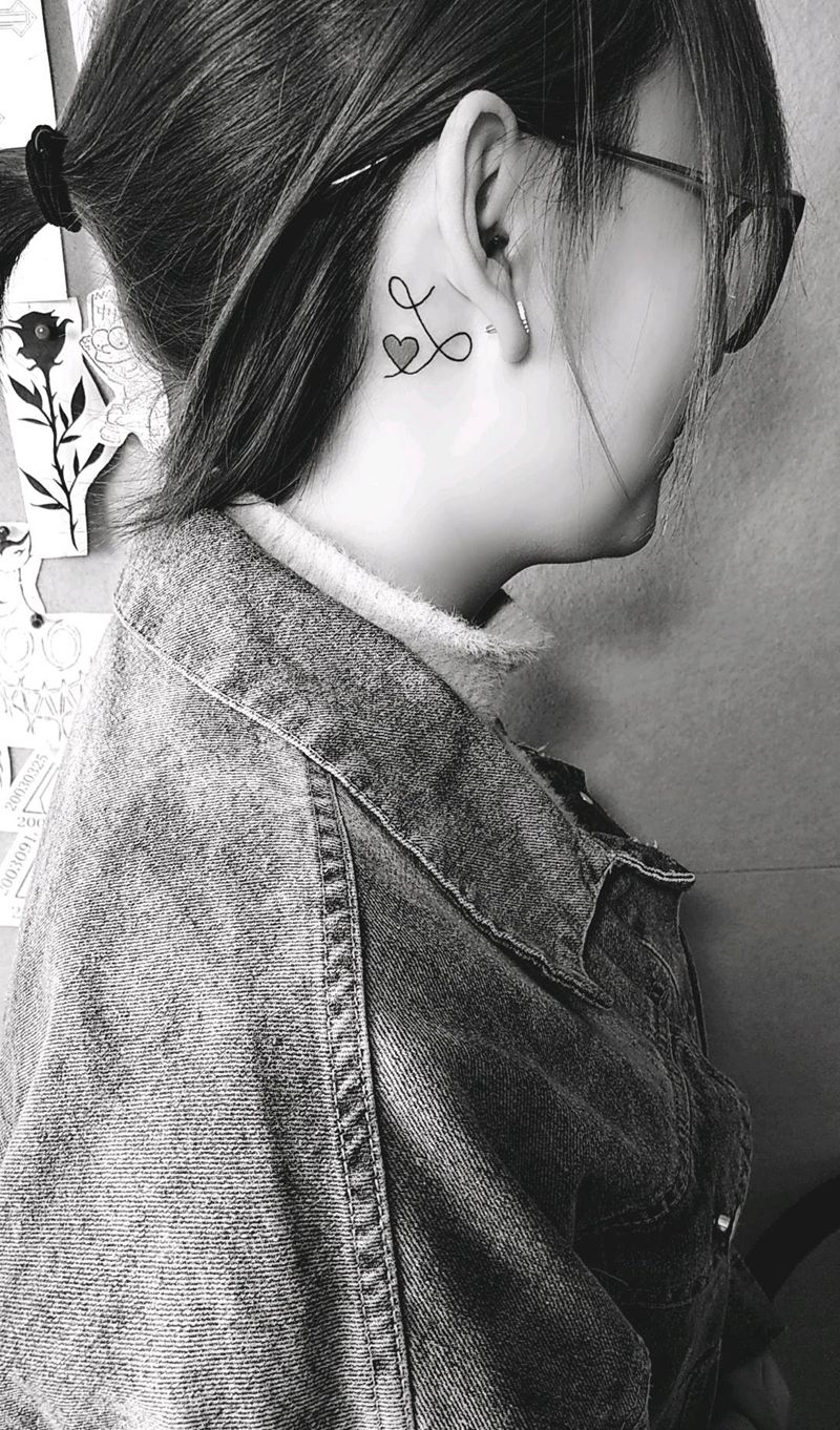 耳后小清新纹身图片_颈部点刺纹身图案