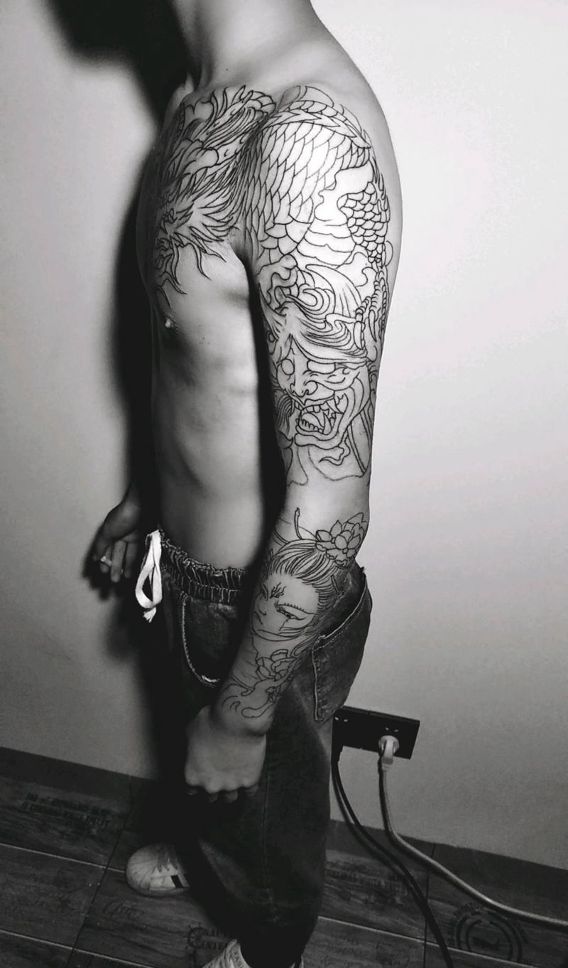 当前位置: 首页 >云南省曲靖市纹身店-金艺神刺工作室纹身图案>花臂 线条纹身图片_手臂新传统纹身图案