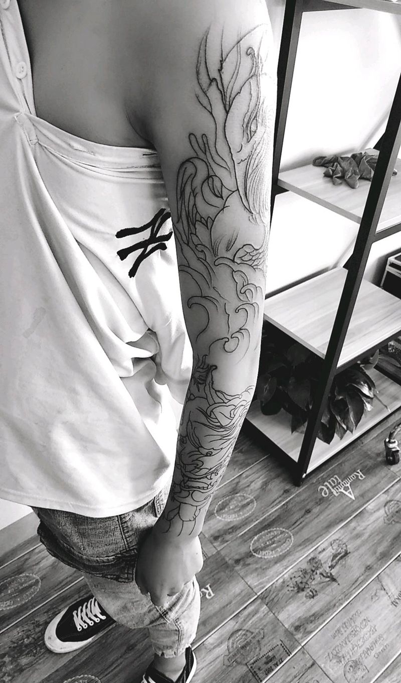 当前位置: 首页 >云南省曲靖市纹身店-金艺神刺工作室纹身图案>花臂 线条纹身图片_手臂新传统纹身图案
