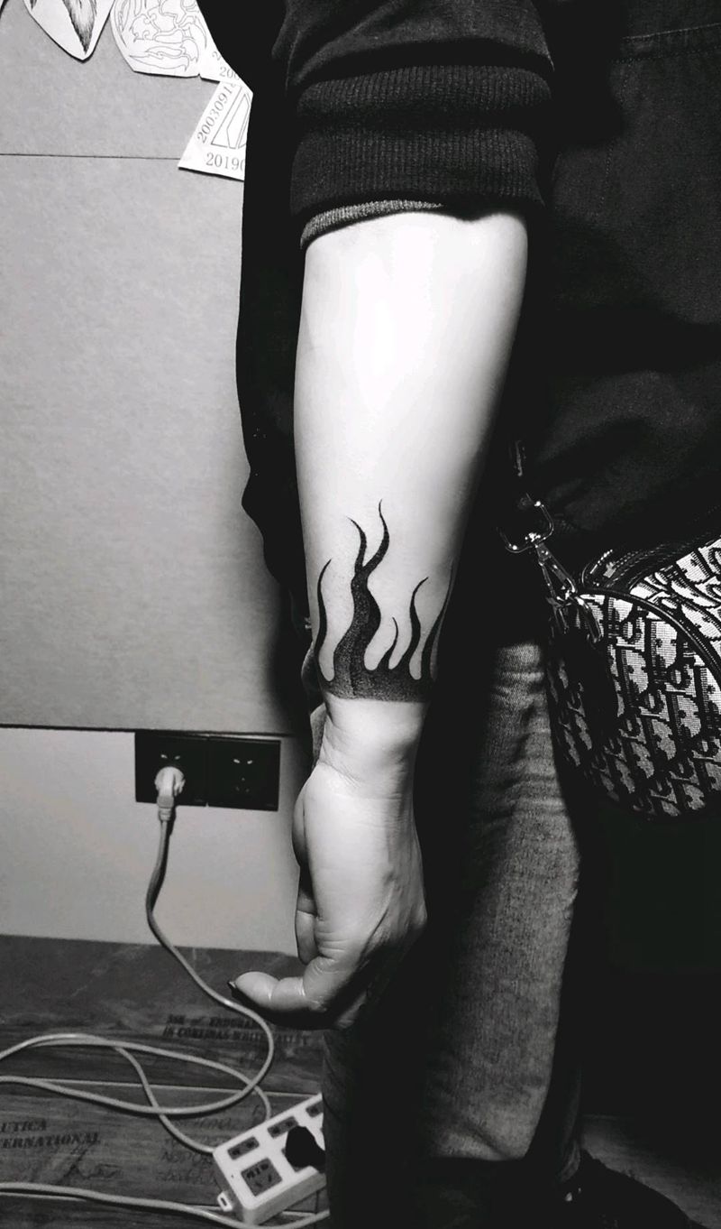 当前位置: 首页 >云南省曲靖市纹身店-金艺神刺工作室纹身图案>火焰 手环纹身图片_手臂点刺纹身图案