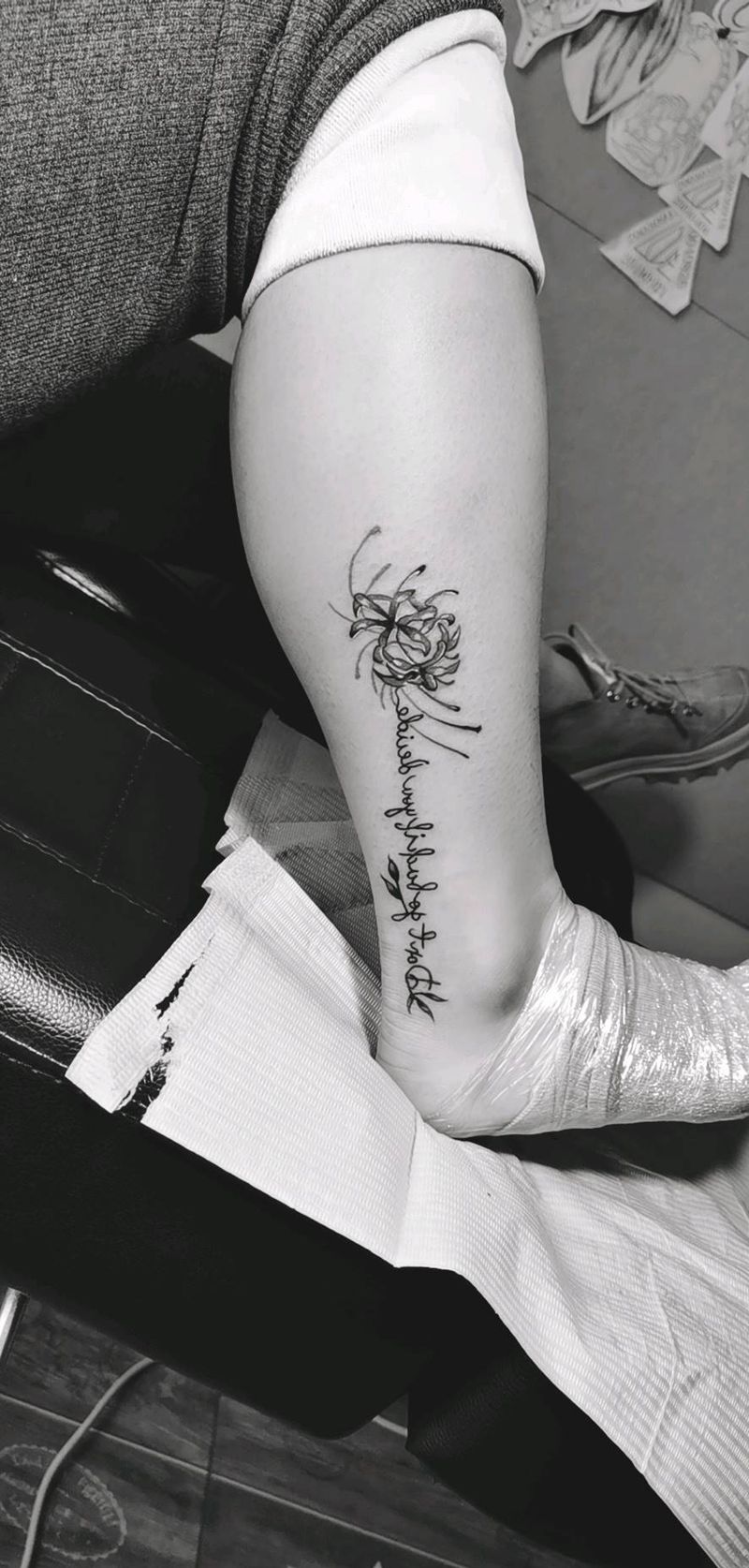 彼岸花 英文字母纹身图片_腿部花体字纹身图案