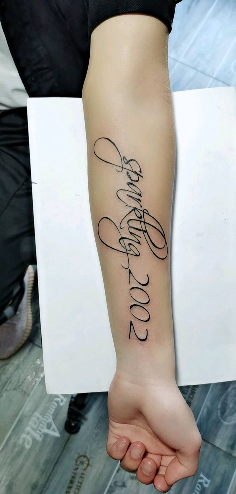 当前位置: 首页 >云南省曲靖市纹身店-金艺神刺工作室纹身图案>英文字母纹身图片_手臂花体字纹身图案