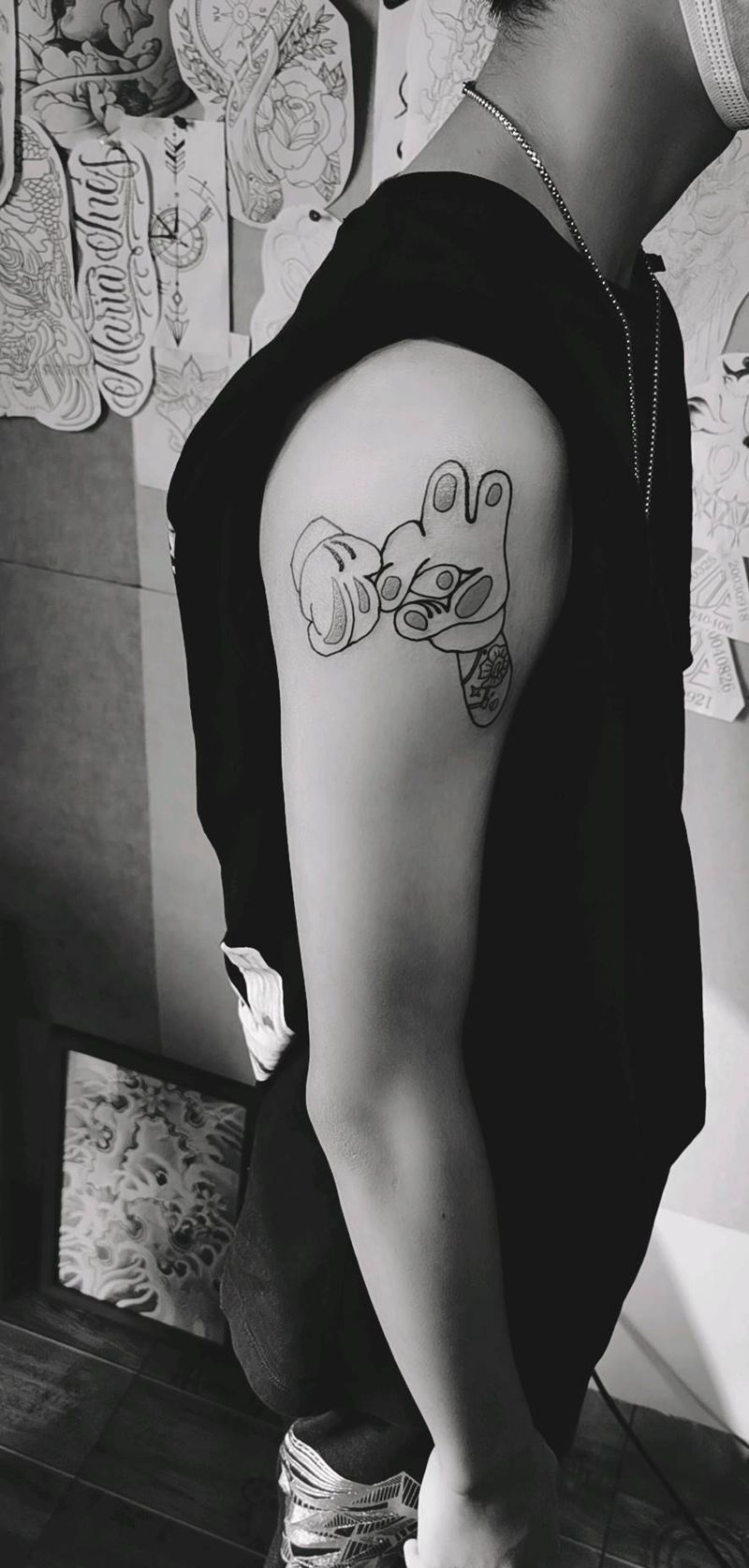 当前位置: 首页 >云南省曲靖市纹身店-金艺神刺工作室纹身图案>可爱 手势纹身图片_手臂点刺纹身图案
