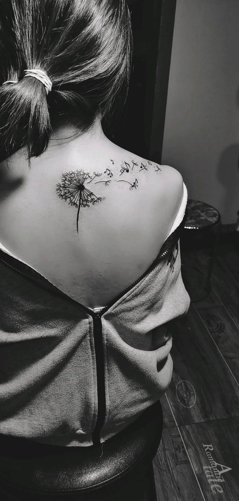 人生就像蒲公英 一去不回头纹身图片_背部几何纹身图案