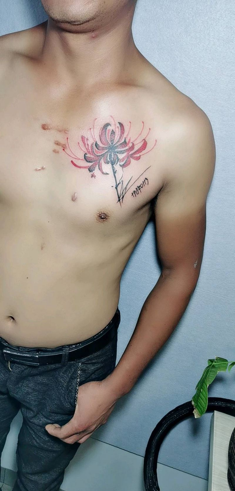 彼岸花 身上纹从此再无意中人纹身图片_胸部水彩纹身图案