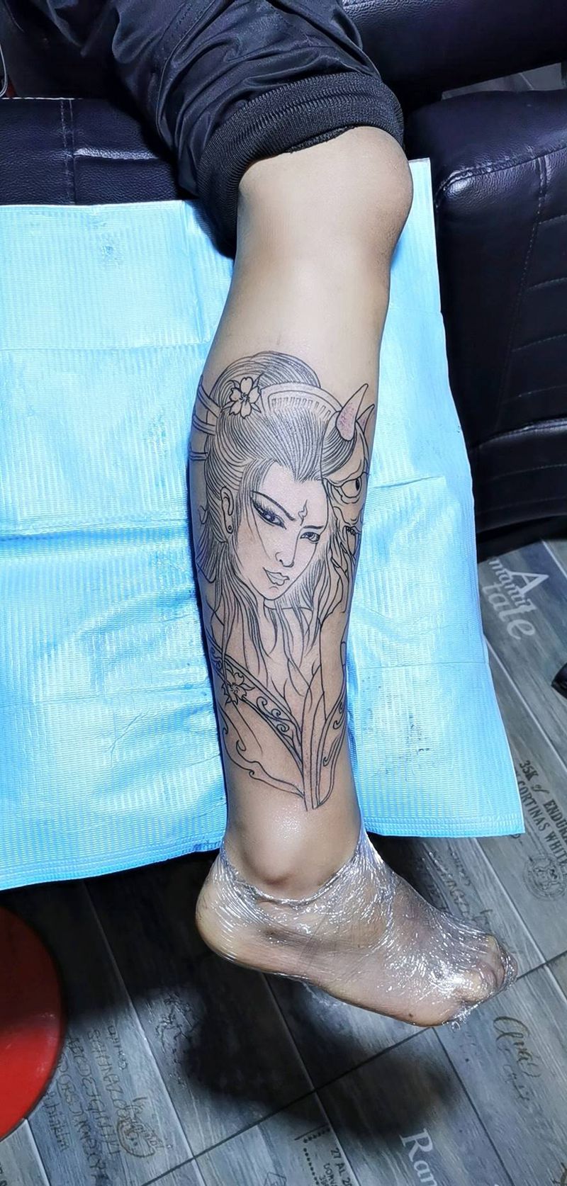 当前位置: 首页 >云南省曲靖市纹身店-金艺神刺工作室纹身图案>新款 艺妓纹身图片_腿部纹身图案