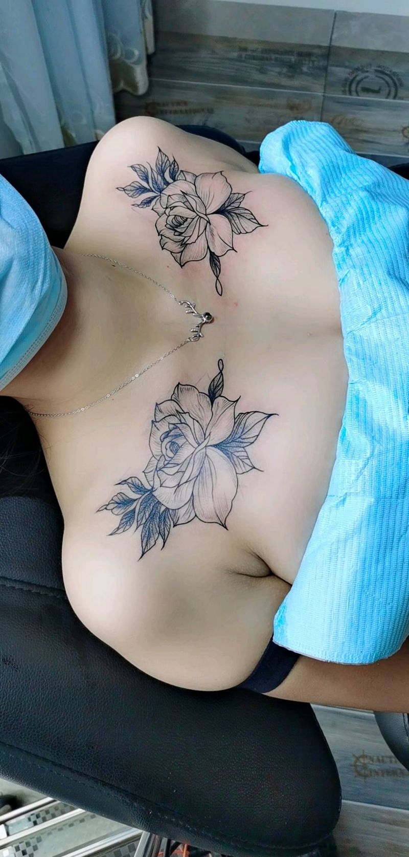 • 女性大花胸纹身_43张霸气漂亮的女性大花胸纹身图案作品