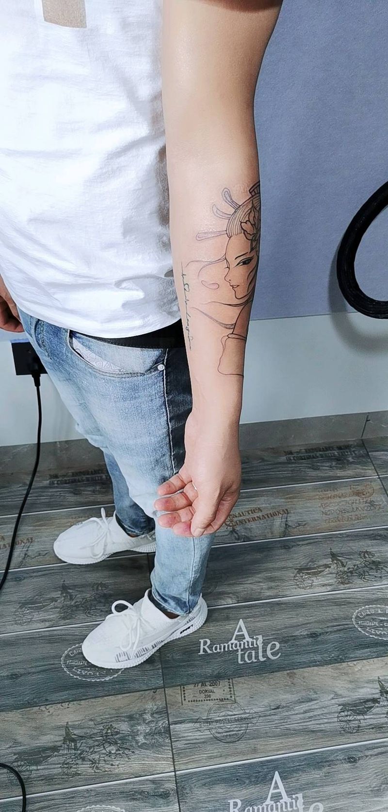 当前位置: 首页 >云南省曲靖市纹身店-金艺神刺工作室纹身图案>艺妓 同款 线条纹身图片_手臂纹身图案