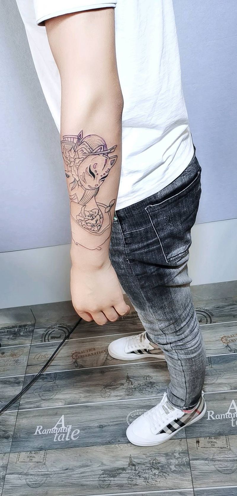 当前位置: 首页 >云南省曲靖市纹身店-金艺神刺工作室纹身图案>艺妓 同款 线条纹身图片_手臂纹身图案