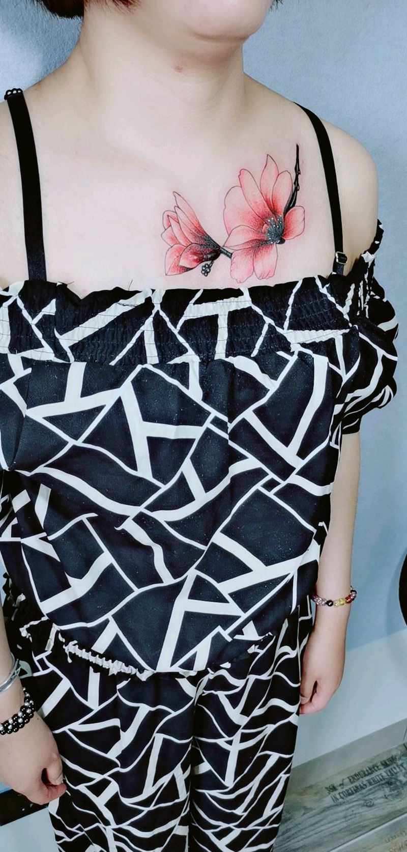• 女性大花胸纹身_43张霸气漂亮的女性大花胸纹身图案作品