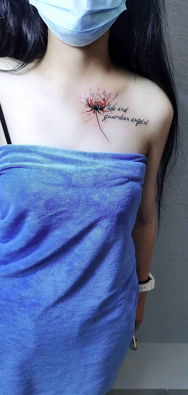 彼岸花 遮盖字母纹身图片_胸部纹身图案