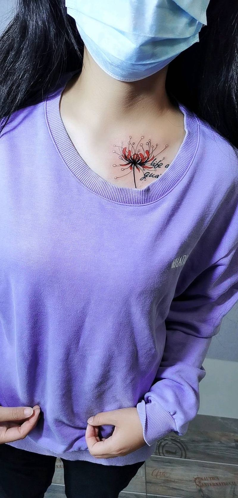 彼岸花 遮盖字母纹身图片_胸部纹身图案