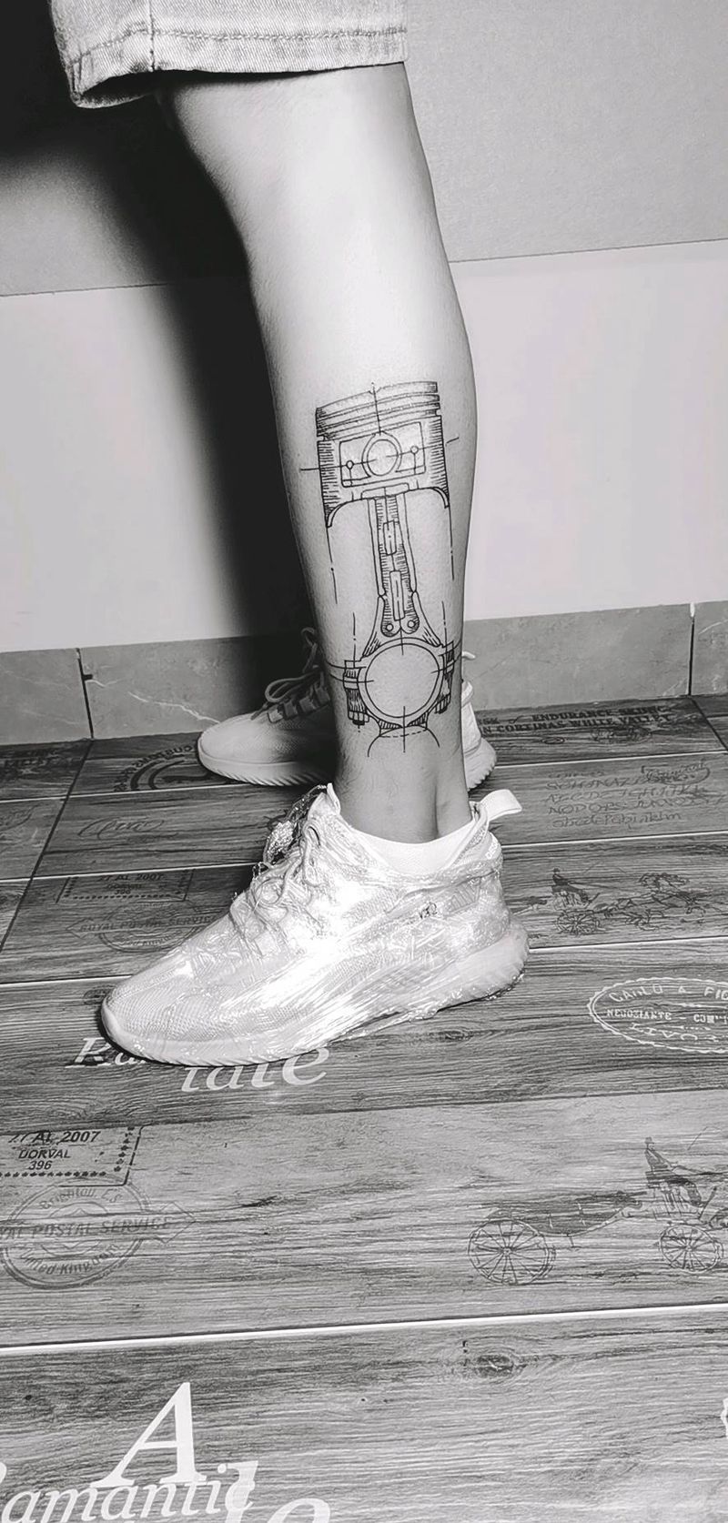 活塞纹身图片_腿部点刺纹身图案