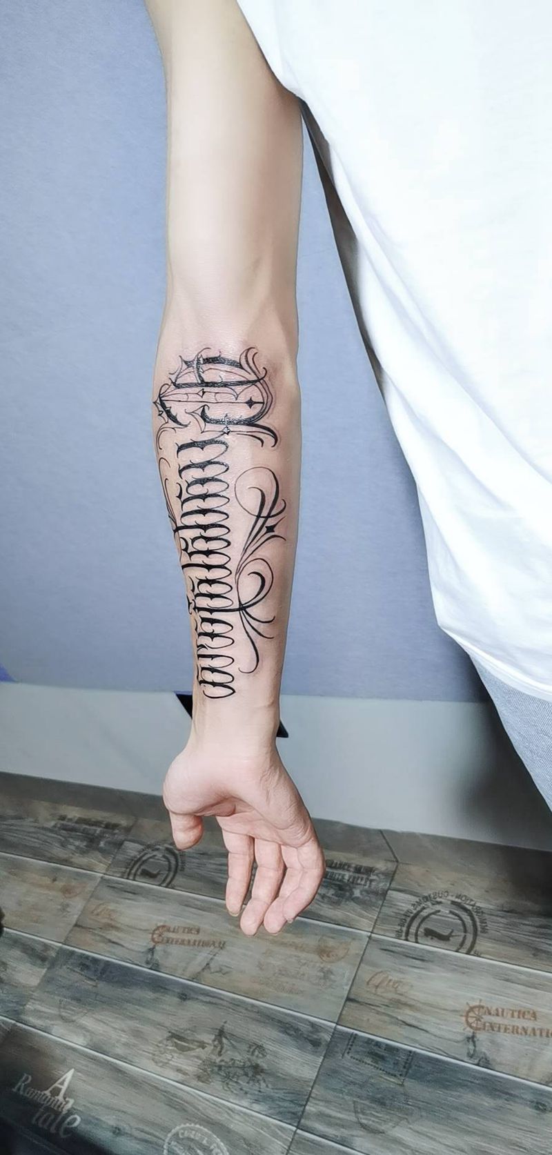 当前位置: 首页 >云南省曲靖市纹身店-金艺神刺工作室纹身图案>花体字纹身图片_手臂花体字纹身图案