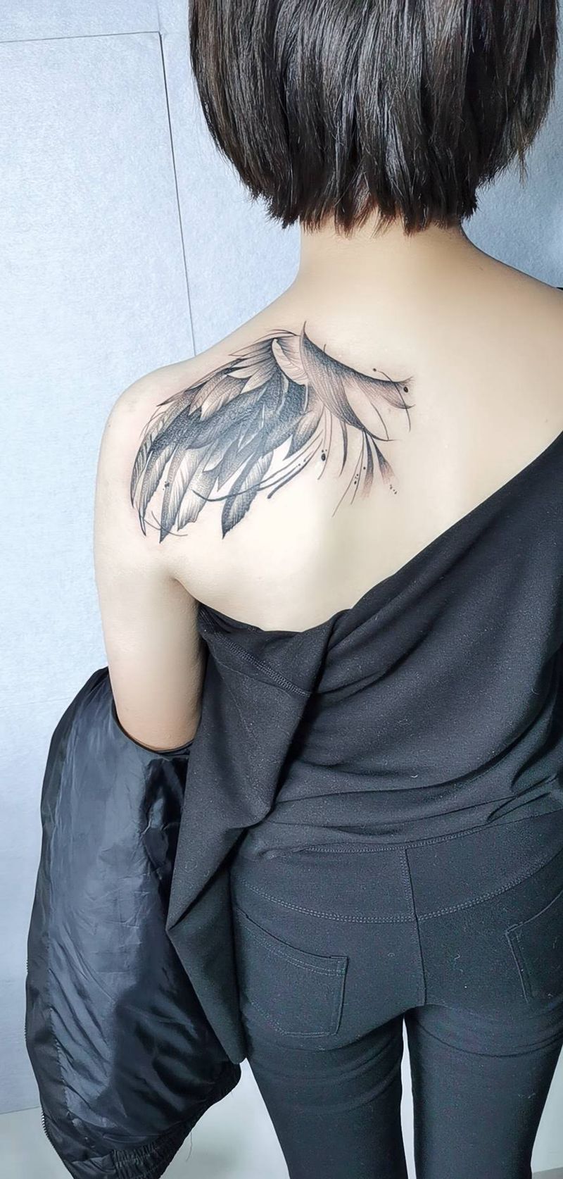 翅膀遮盖纹身纹身图片_背部纹身图案