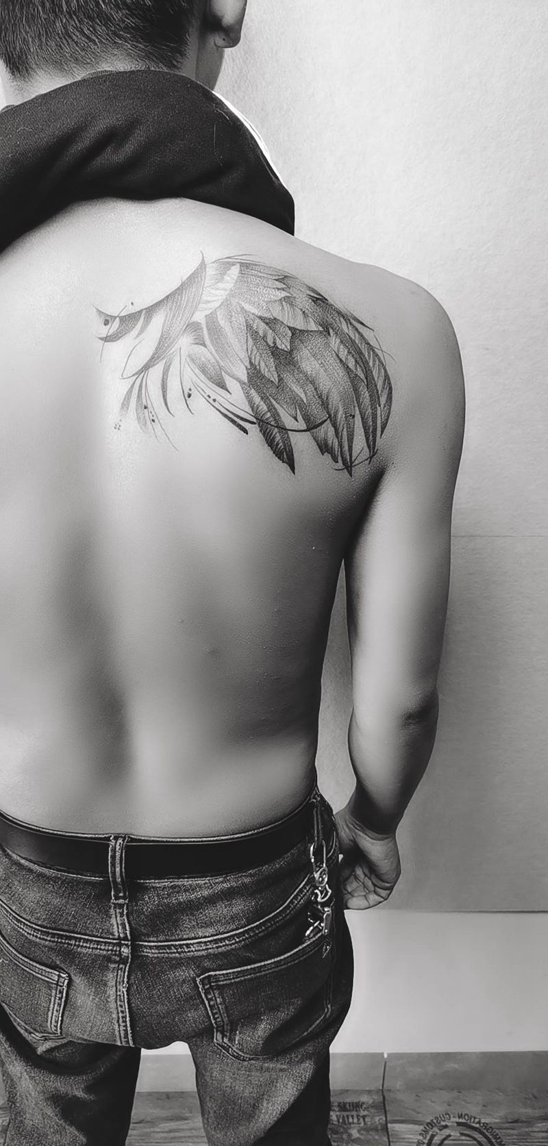 当前位置: 首页 >云南省曲靖市纹身店-金艺神刺工作室纹身图案>翅膀纹身图片_背部点刺纹身图案