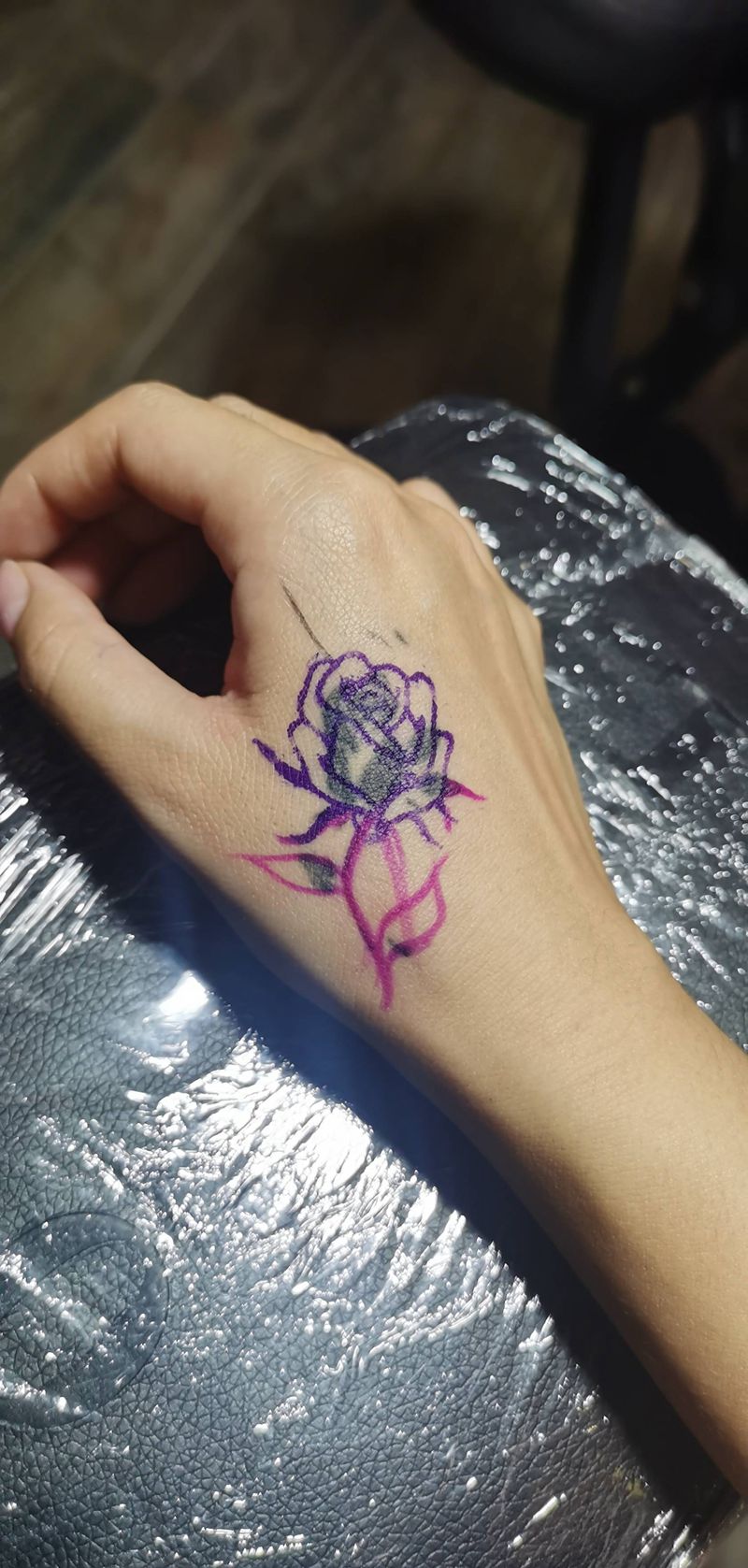 • 手背潮流时尚的玫瑰花眼睛纹身图案