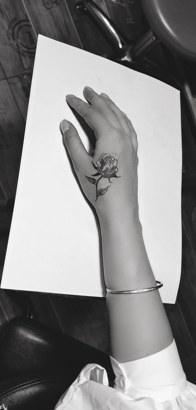 • 手背潮流时尚的玫瑰花眼睛纹身图案