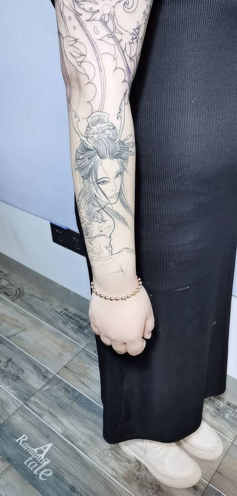 当前位置: 首页 >云南省曲靖市纹身店-金艺神刺工作室纹身图案>花臂 线条纹身图片_手臂新传统纹身图案