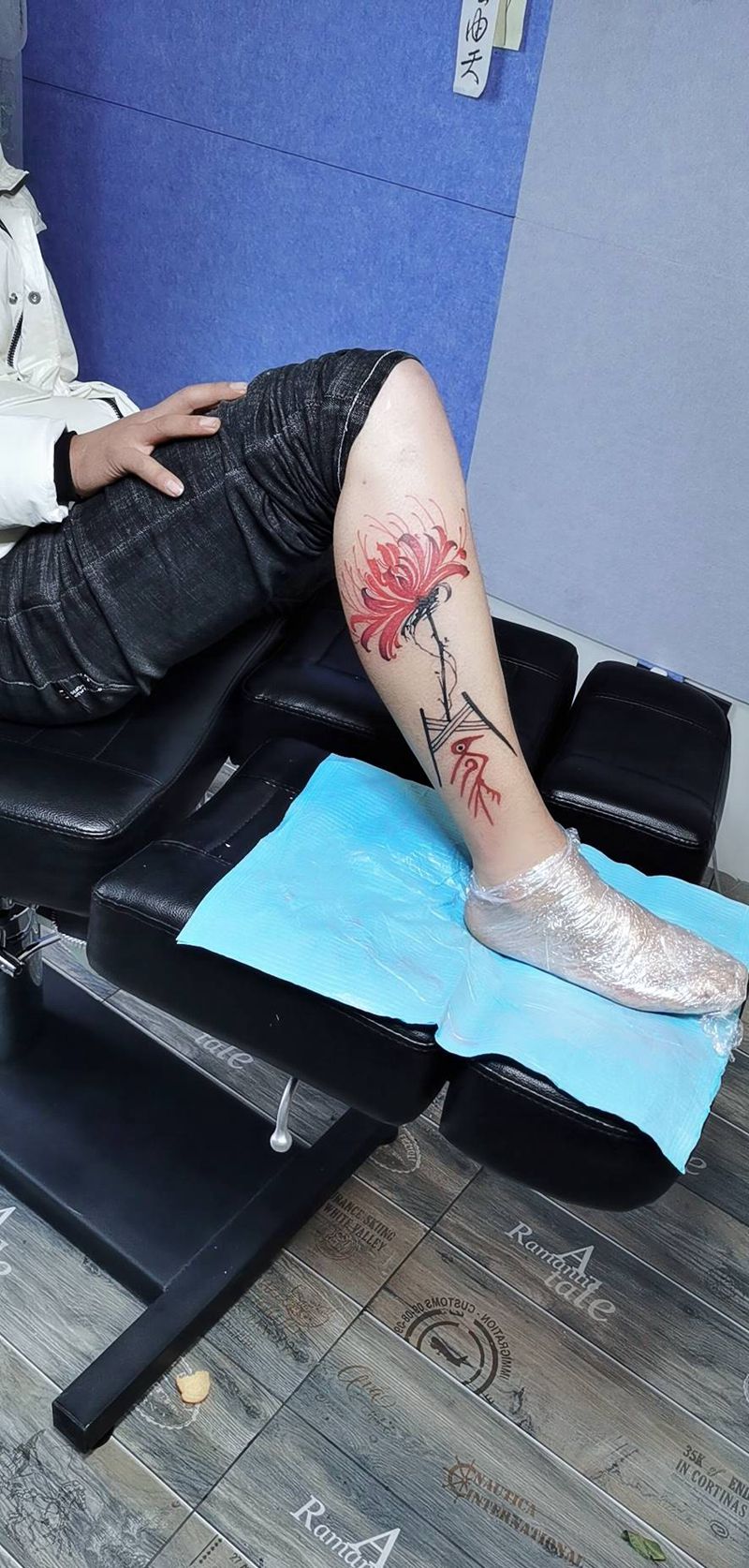 当前位置: 首页 >云南省曲靖市纹身店-金艺神刺工作室纹身图案>彼岸花纹身图片_腿部纹身图案