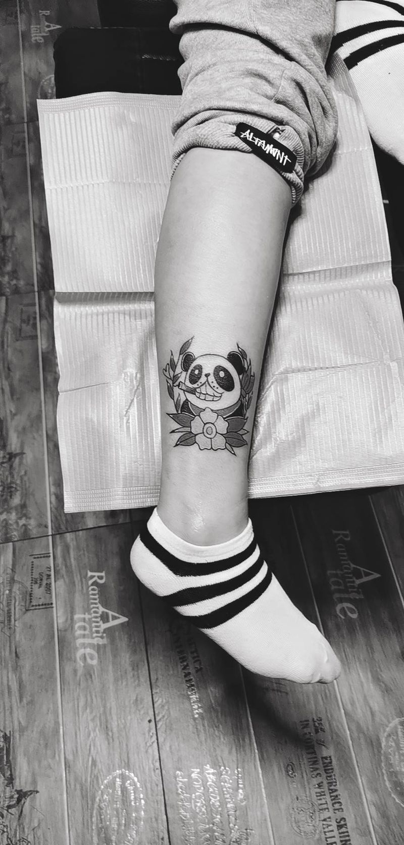 • T包小腿吹火男+阿多福纹身图片_腿部老传统新传统吹火男阿