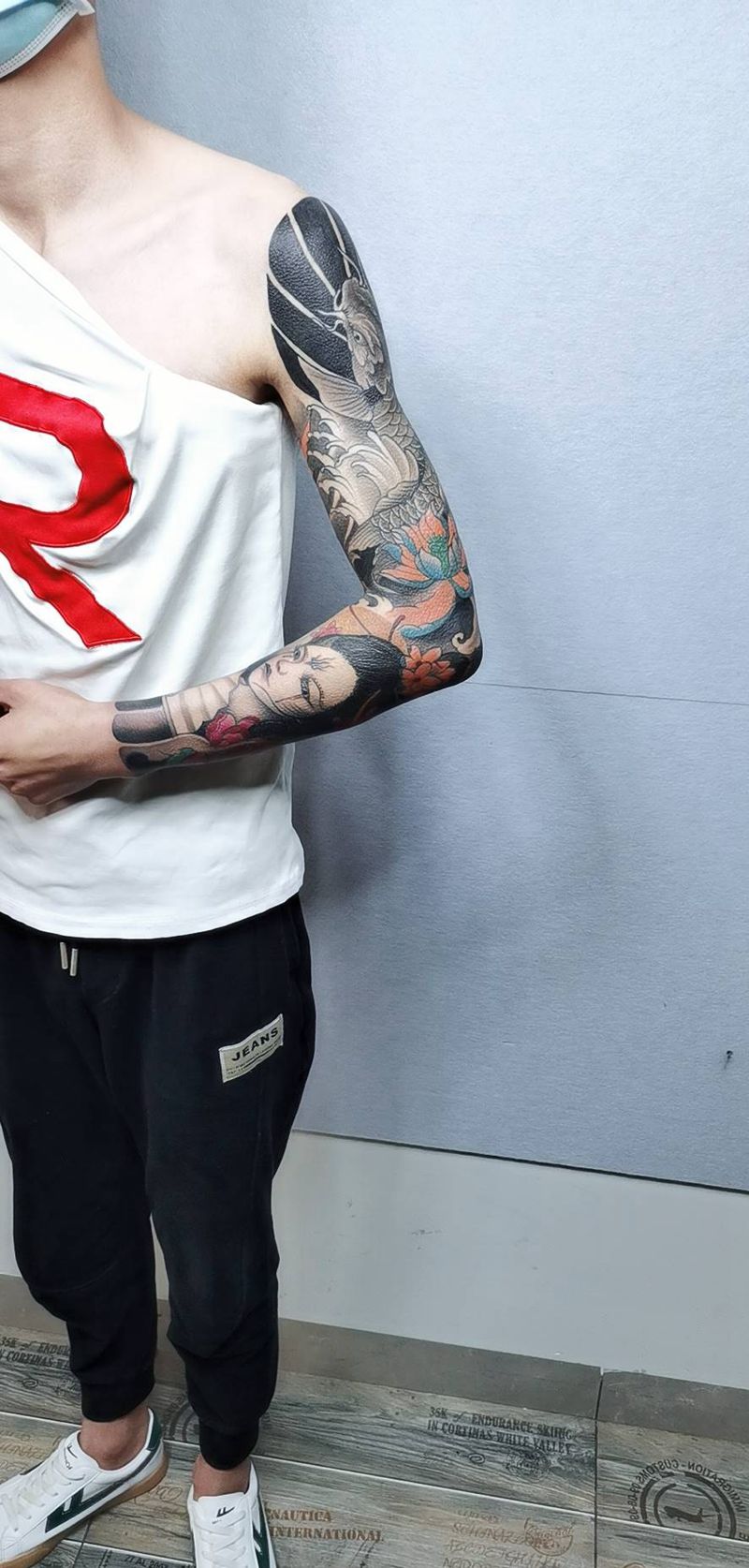当前位置: 首页 >云南省曲靖市纹身店-金艺神刺工作室纹身图案>花臂 完成纹身图片_手臂新传统纹身图案