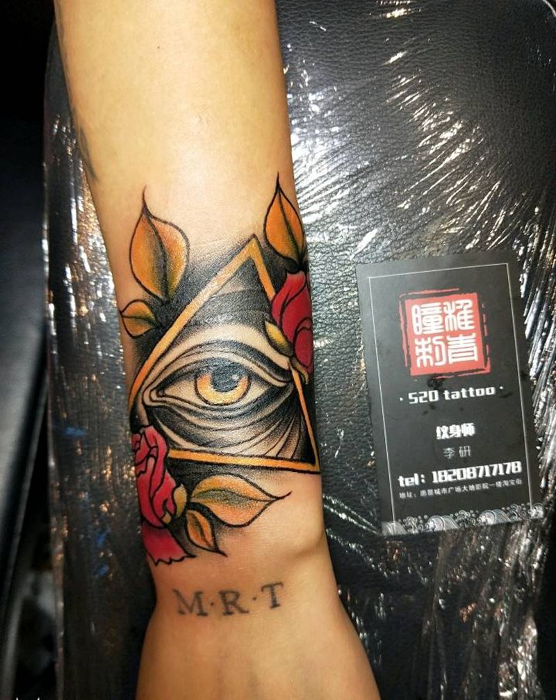 当前位置: 首页 >四川省成都市纹身店-520tattoo瞳稚刺青纹身图案>全视之眼上帝之眼纹身图片_手臂手部欧美宗教old 成品手稿纹身图案