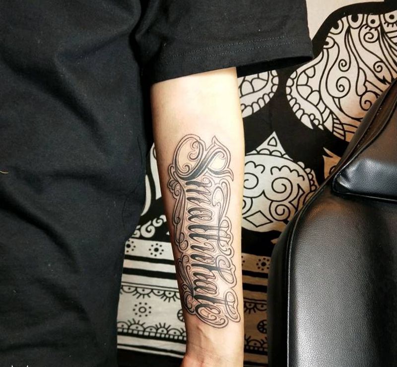 当前位置: 首页 >四川省成都市纹身店-520tattoo瞳稚刺青纹身图案>街舞大佬的爱子纹身图片_手臂花体字奇卡诺纹身图案