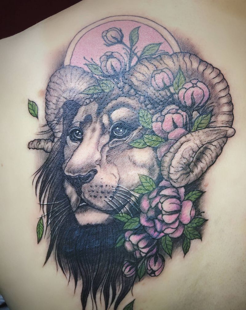 狮子遮盖增生纹身纹身图片_背部肩部New School水彩狮子纹身图案