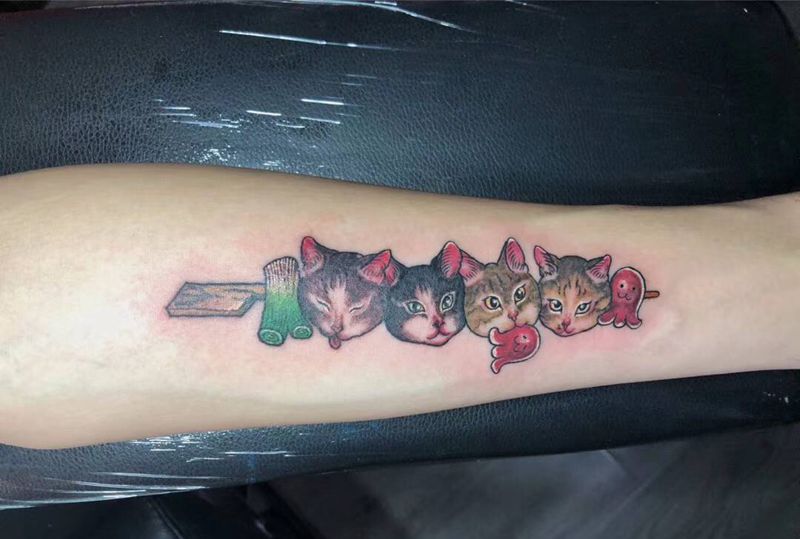 当前位置: 首页 >四川省成都市纹身店-520tattoo瞳稚刺青纹身图案>猫猫串烧纹身图片_手臂New School纹身图案