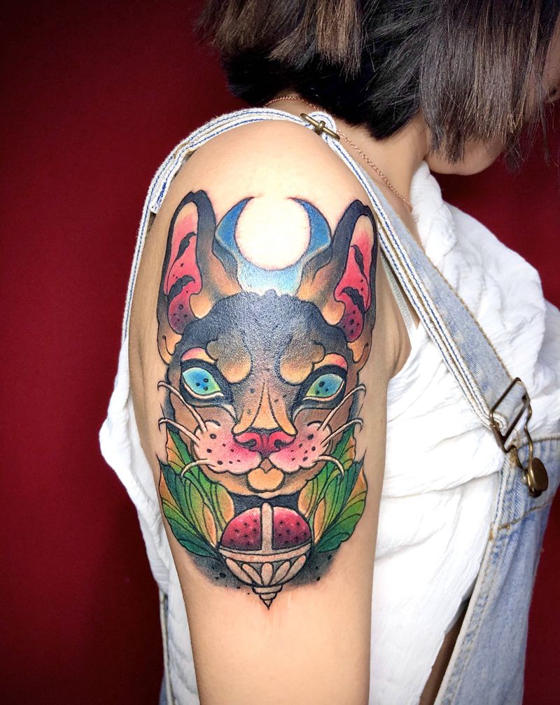 司芬克斯遮盖纹身图片_New School欧美写实遮盖纹身图案