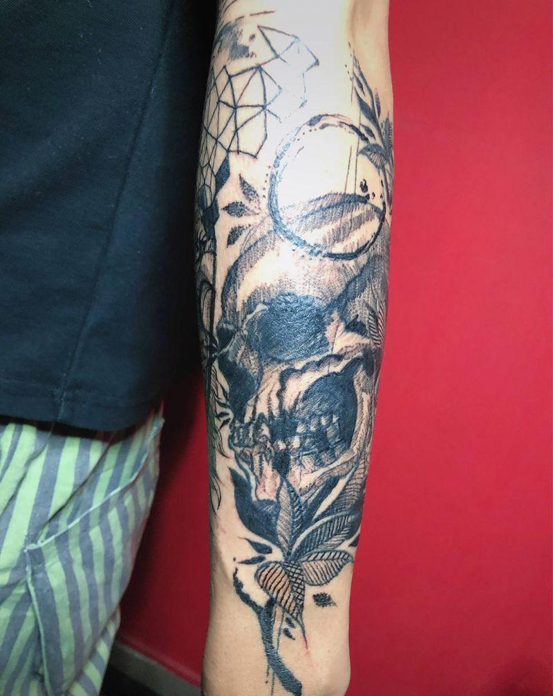 速写暗黑骷髅遮盖纹身图片_手臂几何暗黑遮盖纹身图案