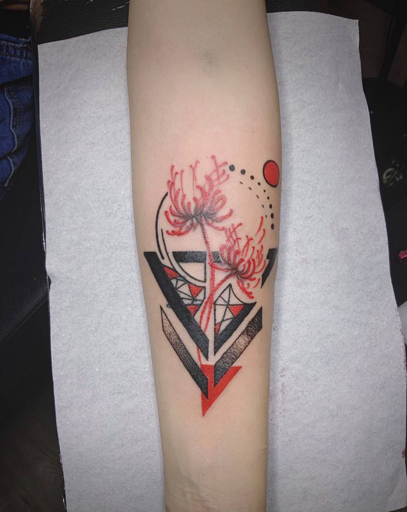 曼珠沙华遮盖修改纹身图片_手臂水墨纹身图案