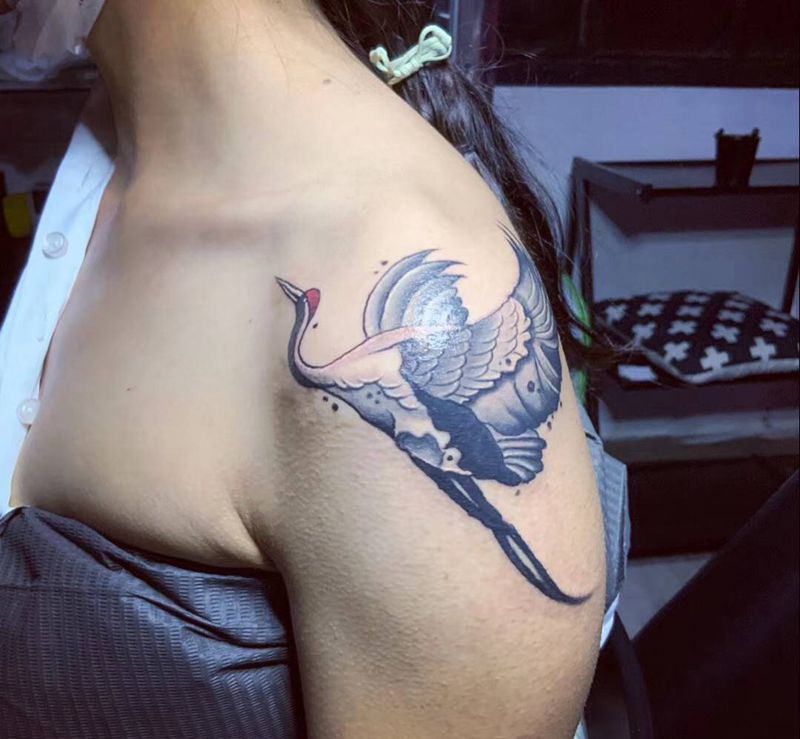 当前位置: 首页 >四川省成都市纹身店-520tattoo瞳稚刺青纹身图案>仙鹤纹身图片_肩部水墨纹身图案