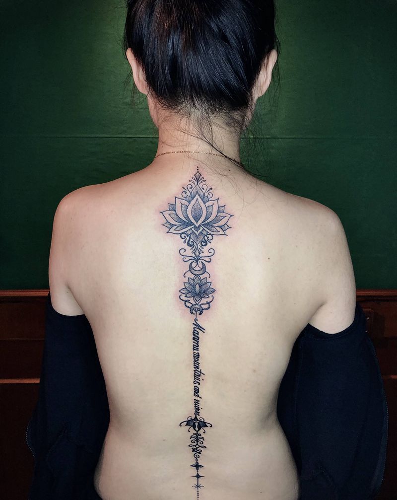 梵花纹身图片_背部点刺图腾莲纹身图案