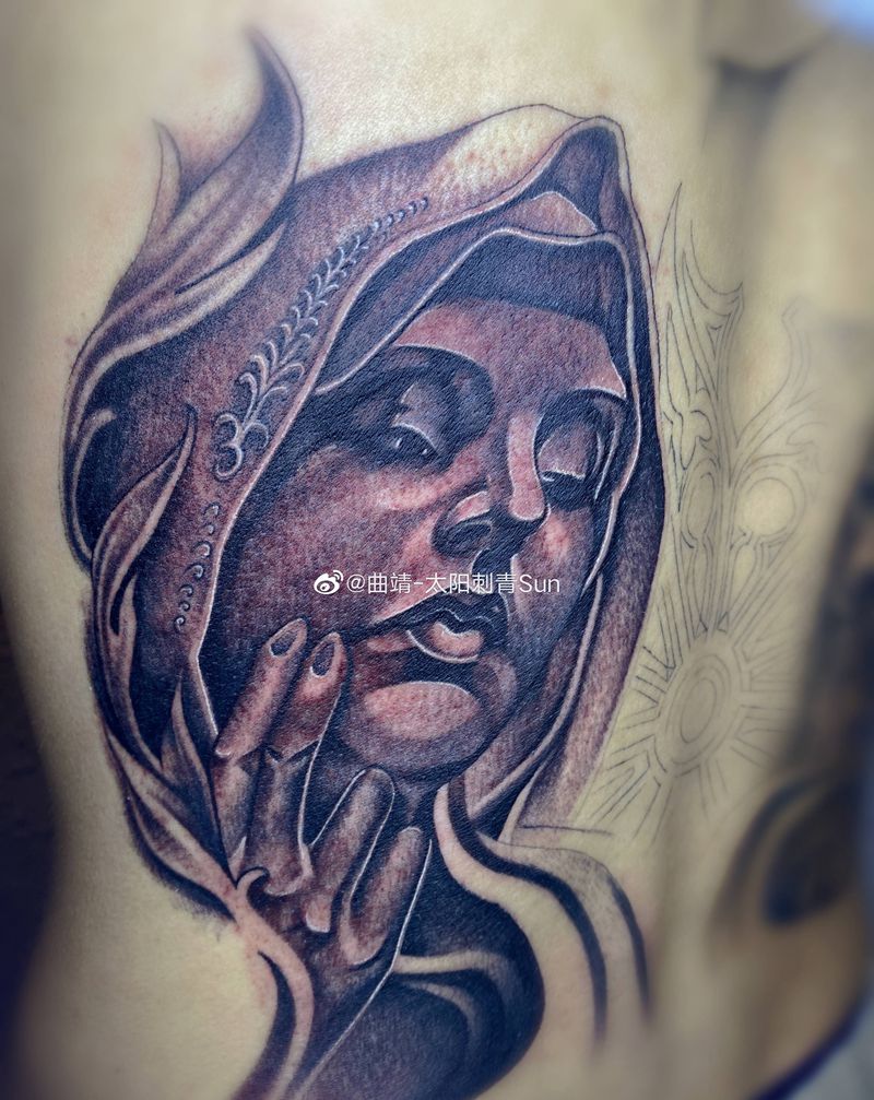 当前位置: 首页 >云南省曲靖市纹身店-曲靖太阳刺青纹身图案>圣母纹身图片_腰部欧美写实纹身图案