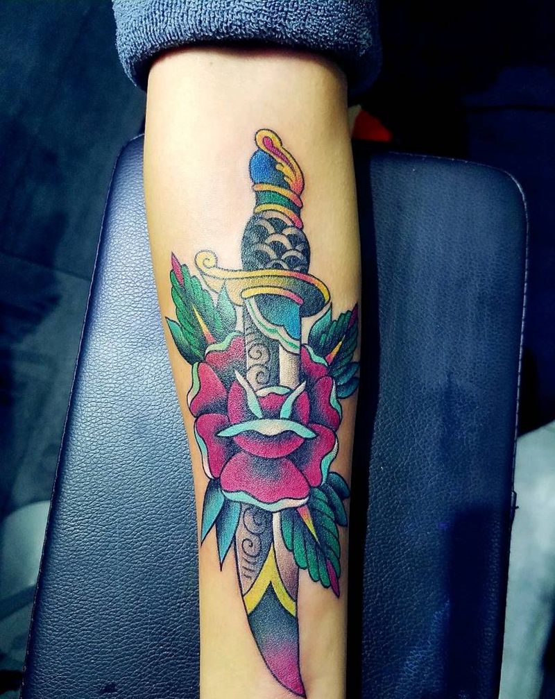 当前位置: 首页 >云南省曲靖市纹身店-曲靖太阳刺青纹身图案>刺刀玫瑰纹身图片