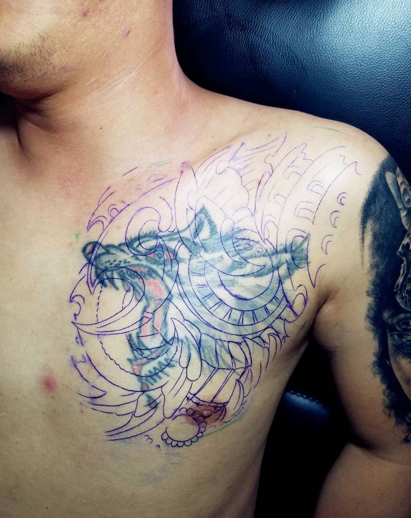 • 男性大花胸_42张优秀的男性大花胸纹身图案图片