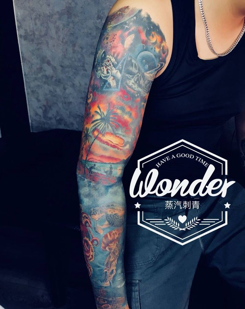 当前位置: 首页 >云南省曲靖市纹身店-曲靖太阳刺青纹身图案>彩色花臂纹身图片