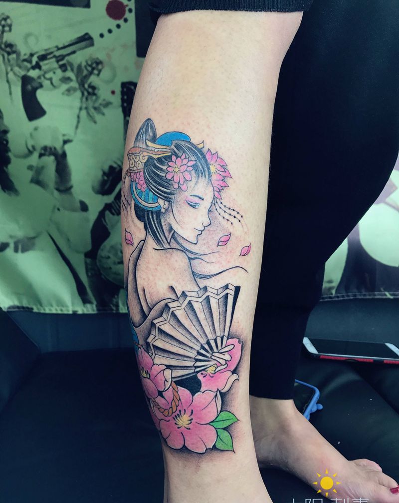 • T包小腿吹火男+阿多福纹身图片_腿部老传统新传统吹火男阿