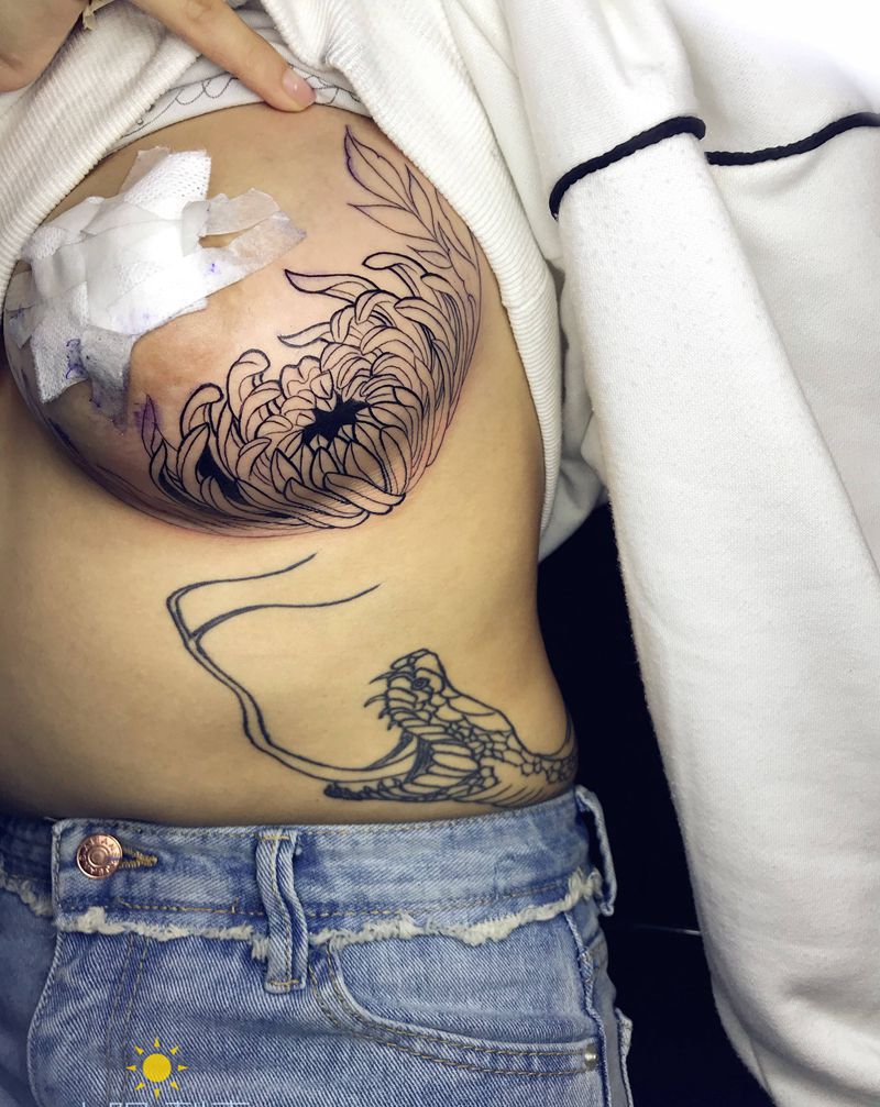 • 女性大花胸纹身_43张霸气漂亮的女性大花胸纹身图案作品