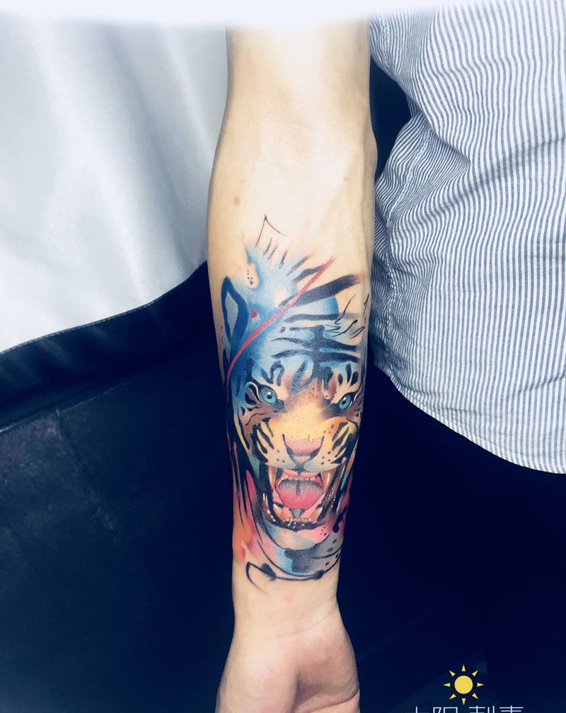 当前位置: 首页 >云南省曲靖市纹身店-曲靖太阳刺青纹身图案>虎头纹身图片_手臂水彩纹身图案