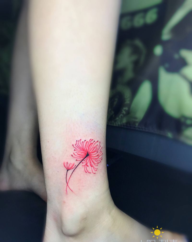 当前位置: 首页 >云南省曲靖市纹身店-曲靖太阳刺青纹身图案>彼岸花纹身图片_脚部纹身图案