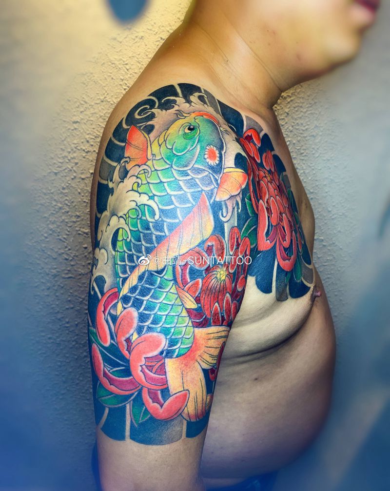 当前位置: 首页 >云南省曲靖市纹身店-曲靖太阳刺青纹身图案>半甲遮盖纹身图片_肩部老传统纹身图案