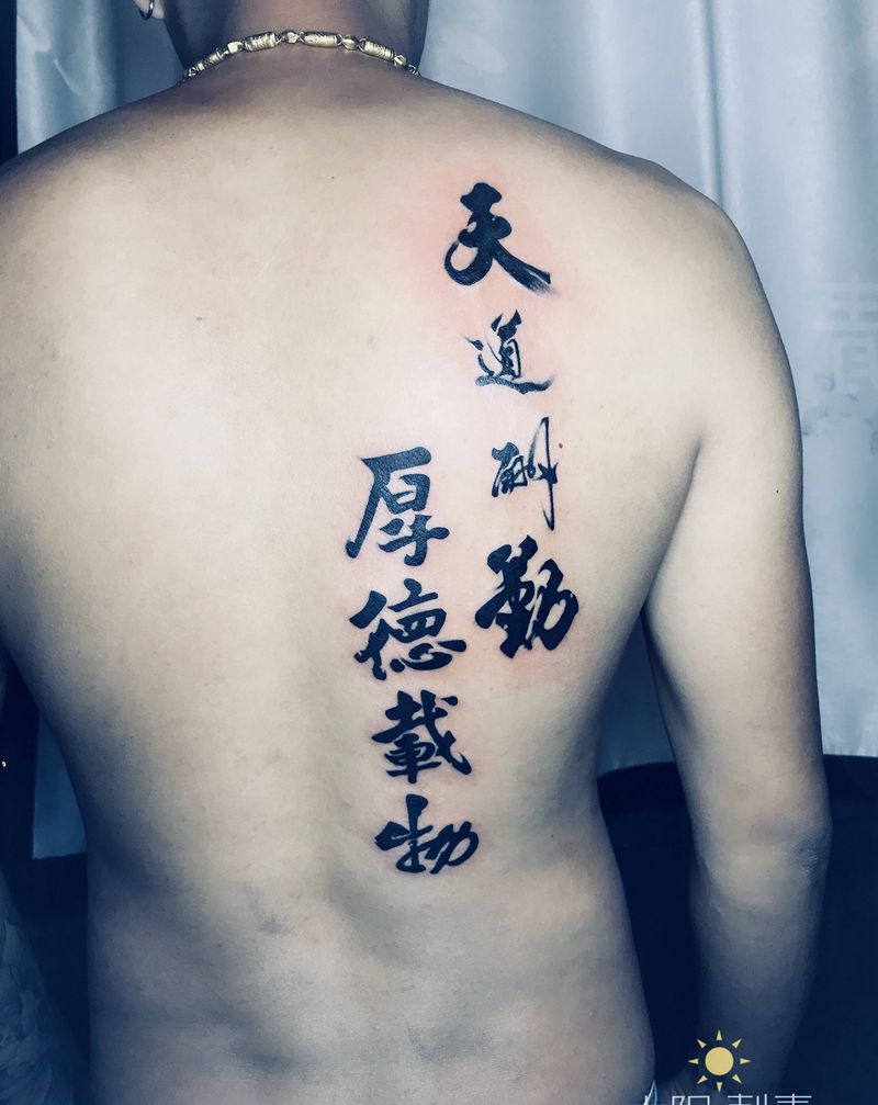天道酬勤纹身图片_背部纹身图案