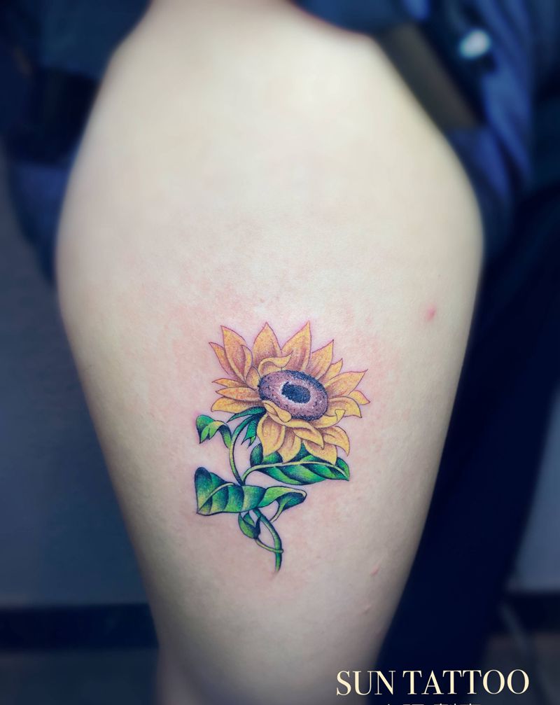 当前位置: 首页 >云南省曲靖市纹身店-曲靖太阳刺青纹身图案>向日葵纹身图片_腿部纹身图案