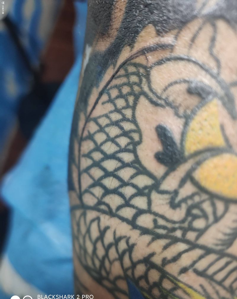 • T网红王老大花腿龙纹身图片_腿部新传统纹身图案