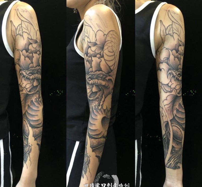• T网红王老大花腿龙纹身图片_腿部新传统纹身图案