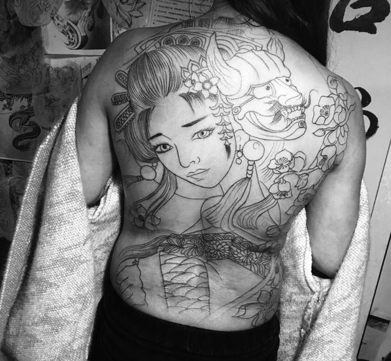 • 黑灰满背纹身图案
