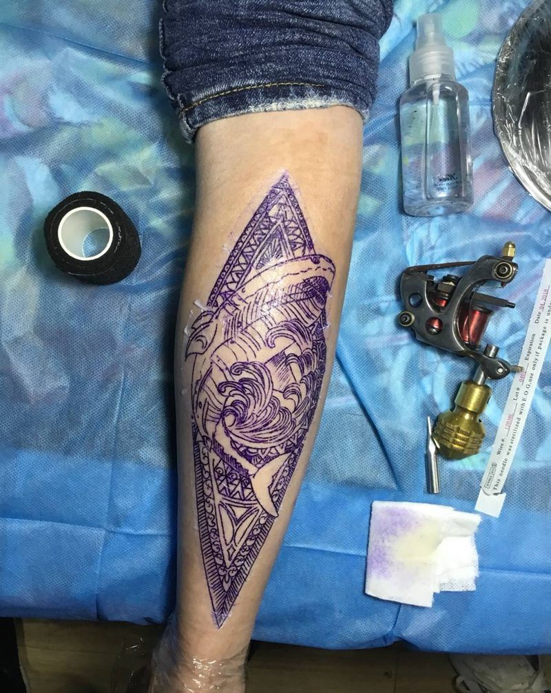 • T网红王老大花腿龙纹身图片_腿部新传统纹身图案